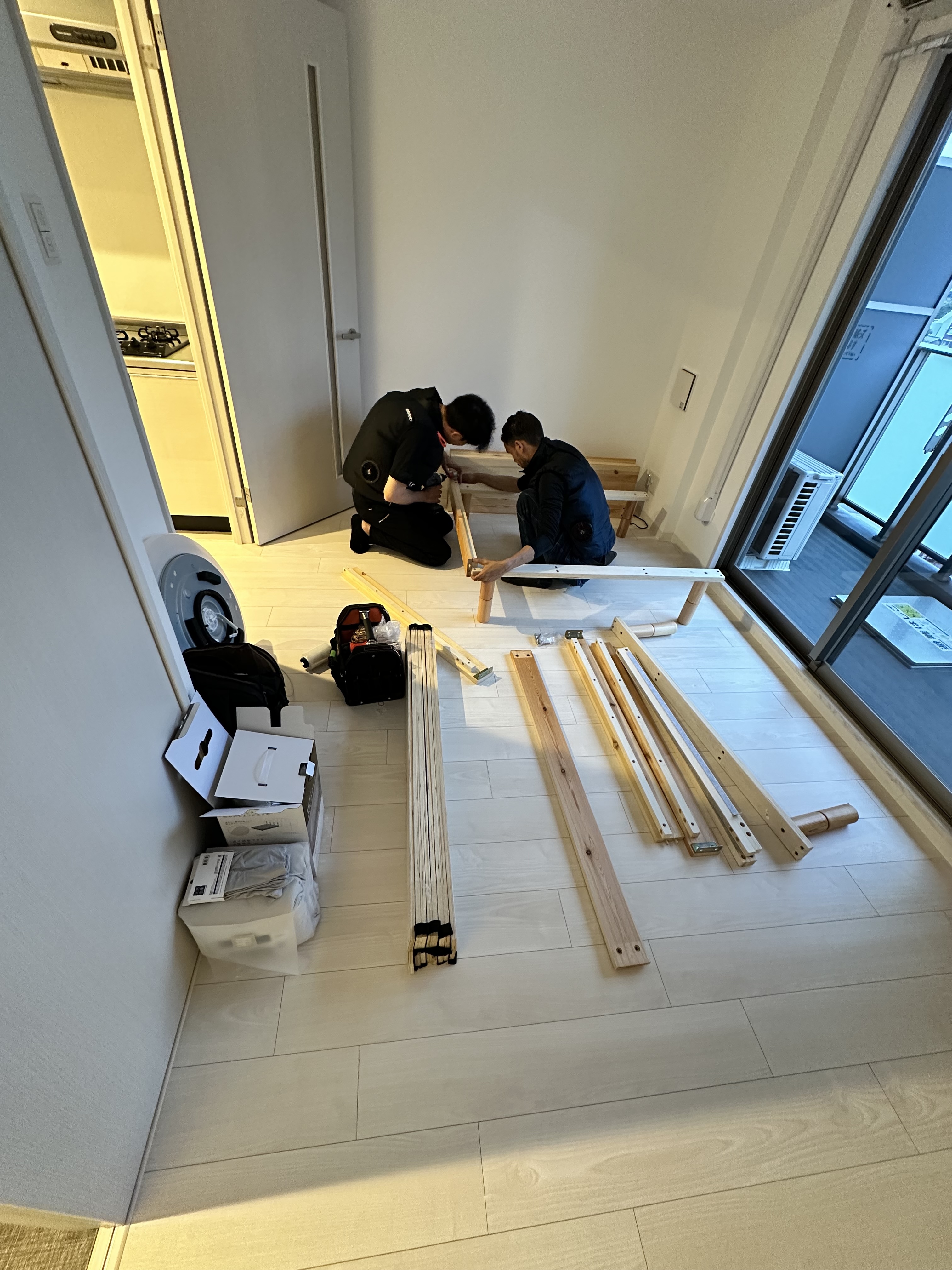 我只買了床、冰箱、洗衣機、客廳大燈等大型必要傢俱,確保當天能順利住下來,傢俱商也有提供幫忙搬運與安裝的服務,蠻讚的。