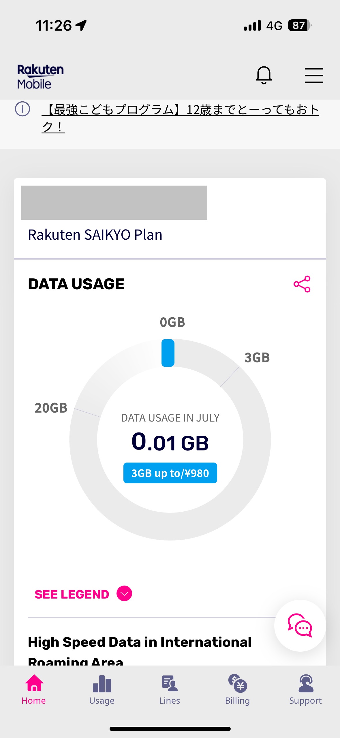 第二就是依照你的用量收費,3G、20G 分段收費,超過20G後都是收一樣的價格,因為房間就有Wi-Fi了,這點對我來說非常彈性。