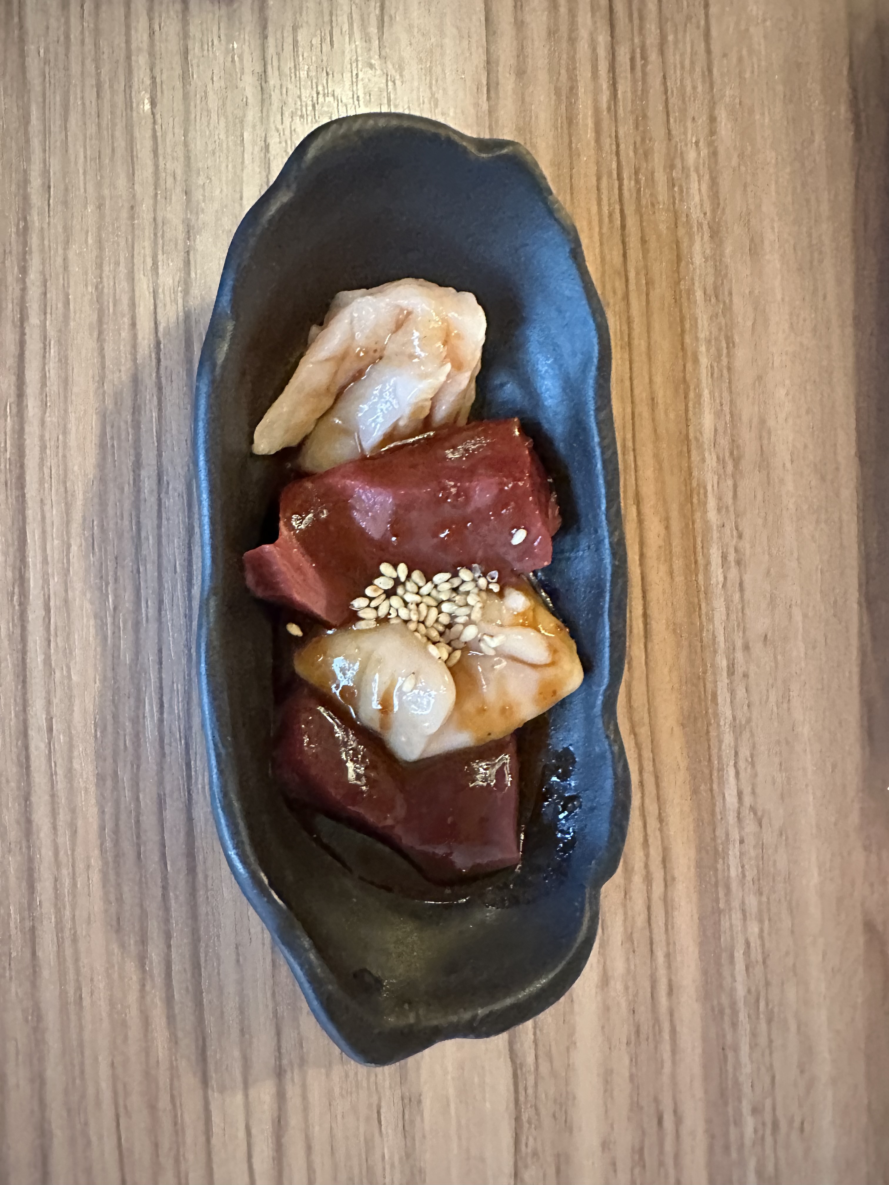 肉的品質不錯,不過還是吃不慣冷盤的生牛肉,量不多CP值不高嚐鮮即可。