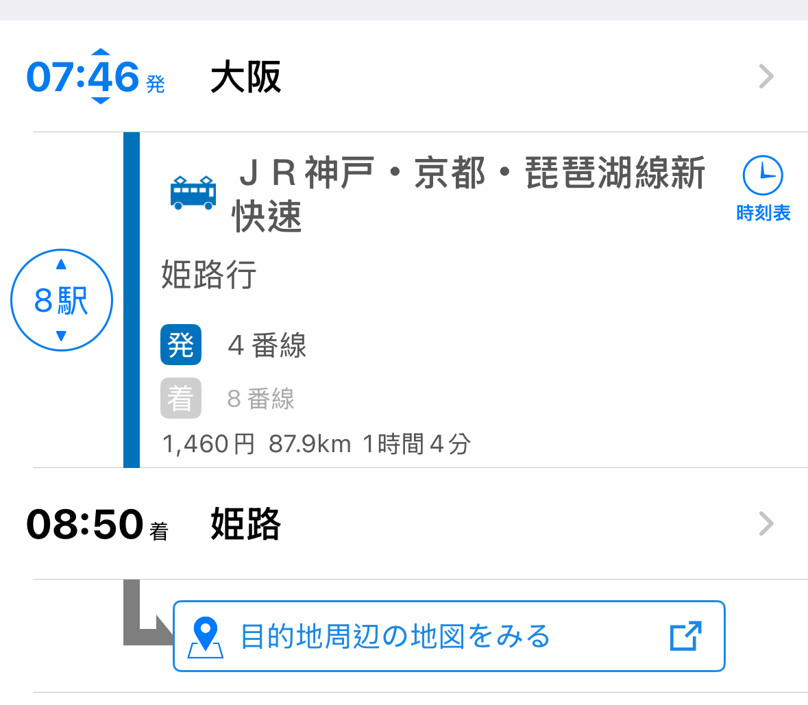 去程直接搭JR從大阪梅田站到姬路站,差不多一小時就會到,回程同樣搭JR停靠神戶站下車,最後再回大阪。