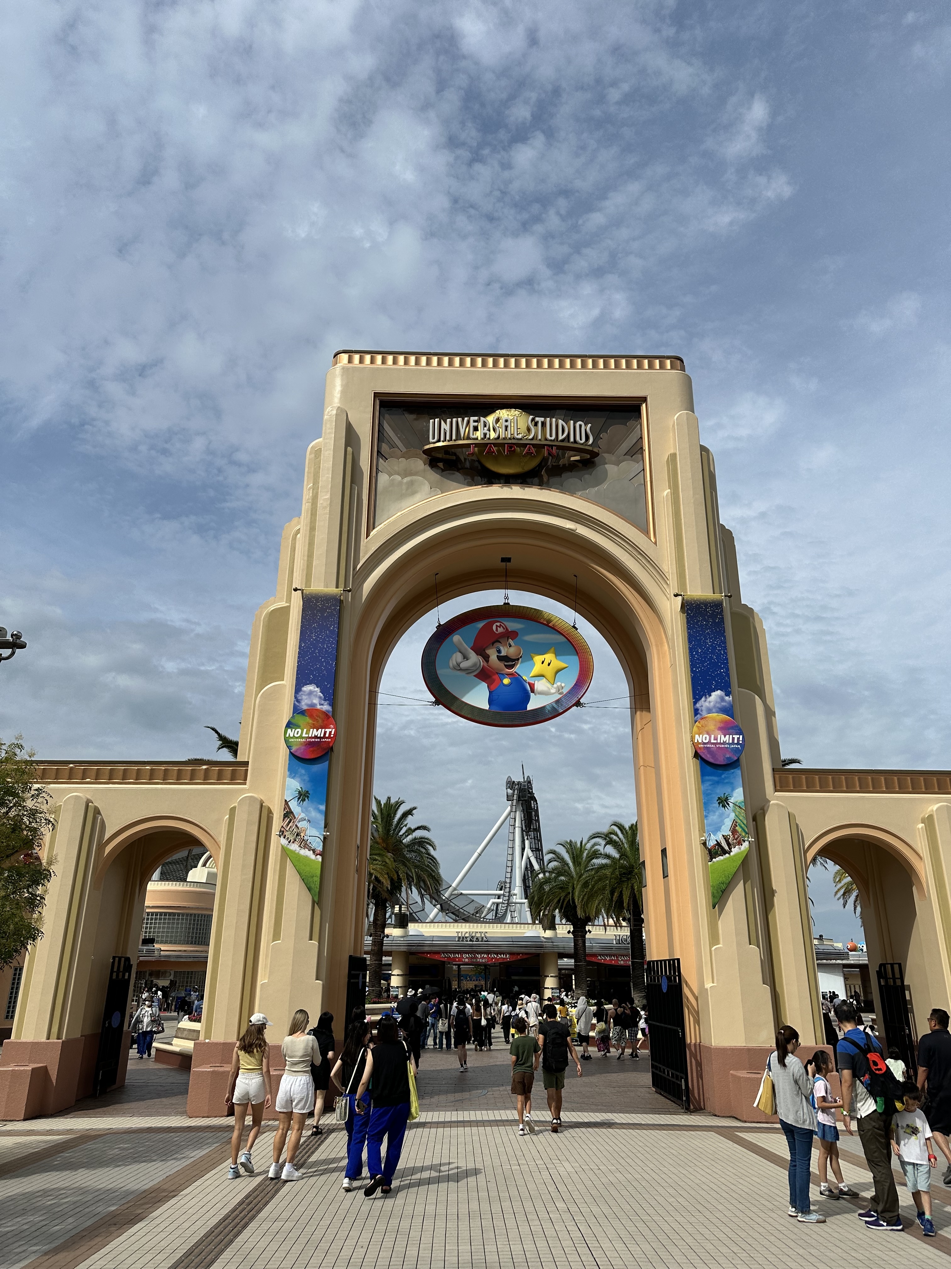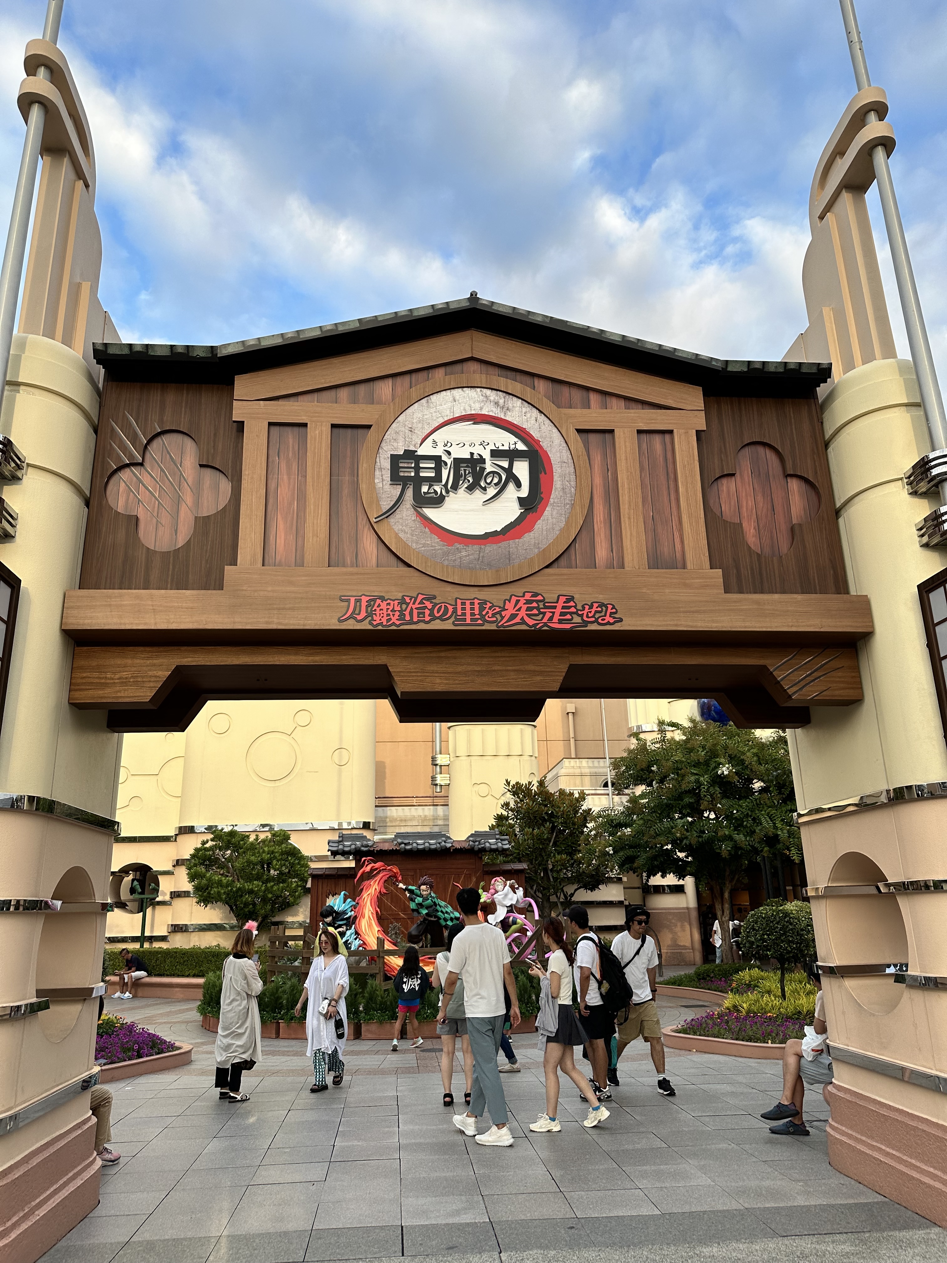 環球站一出來就是周圍的商店街、美食街,跟著人潮走就會走到大門口了。