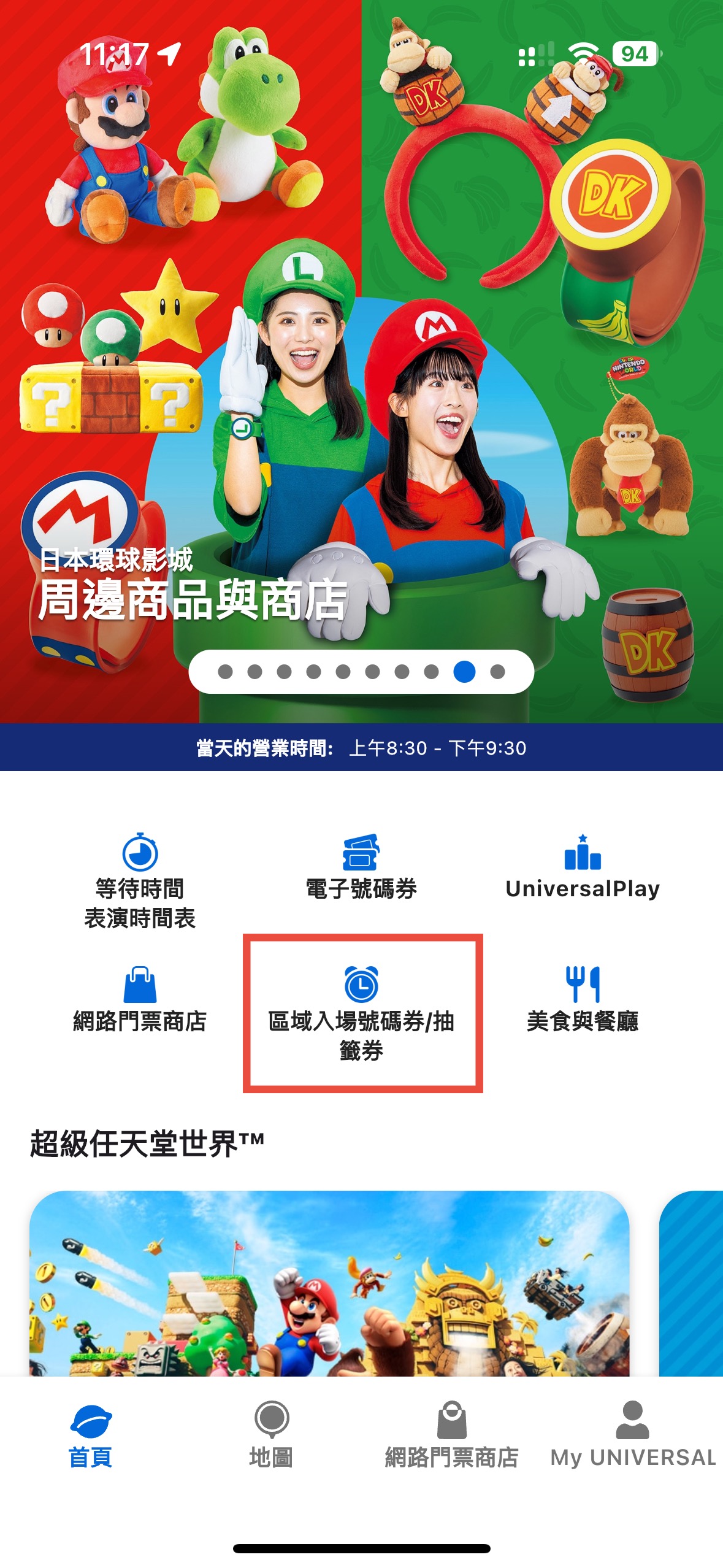 抽特別區域(如瑪利歐園區)的入場卷:- 要