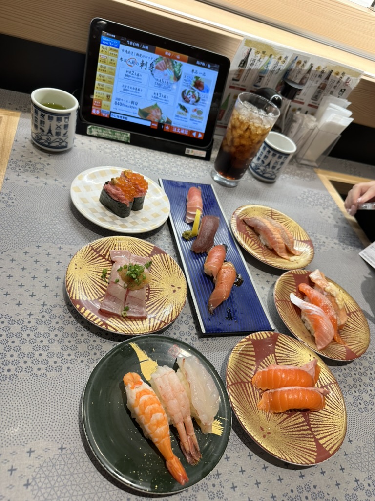 晚餐時間就到了,這裡的一間迴轉壽司,當下才臨時找的,還蠻好吃的,比其他連鎖的壽司郎、藏壽司還讚,價格也很便宜CP值超高。