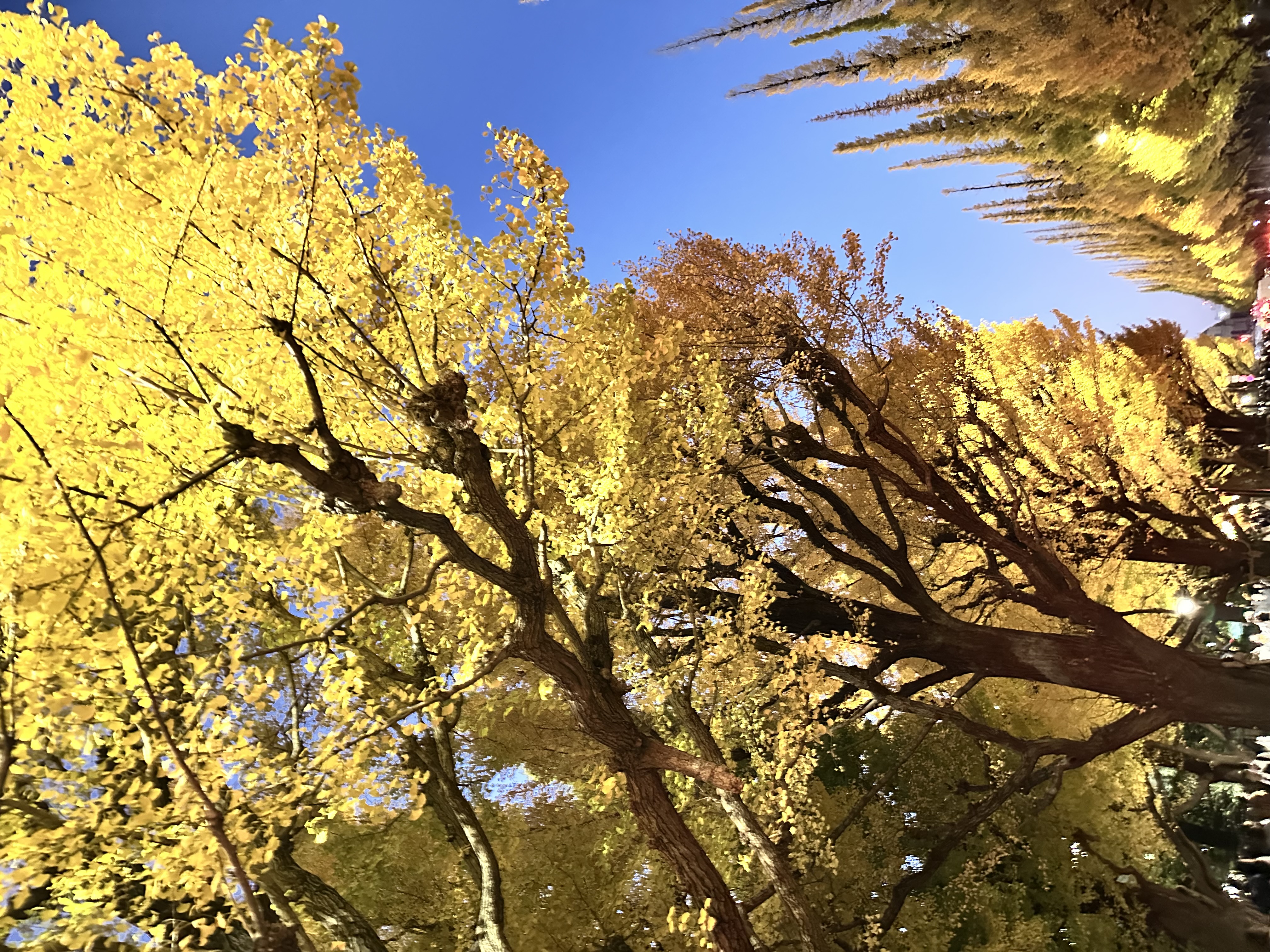 在池袋逛到4點多想說,還有時間,就衝去看銀杏, 想說只隔2、3站電車,沒想到意外的花時間半個多小時才到,到那邊天色已經偏暗了,不過傍晚開燈的銀杏也算還不錯。