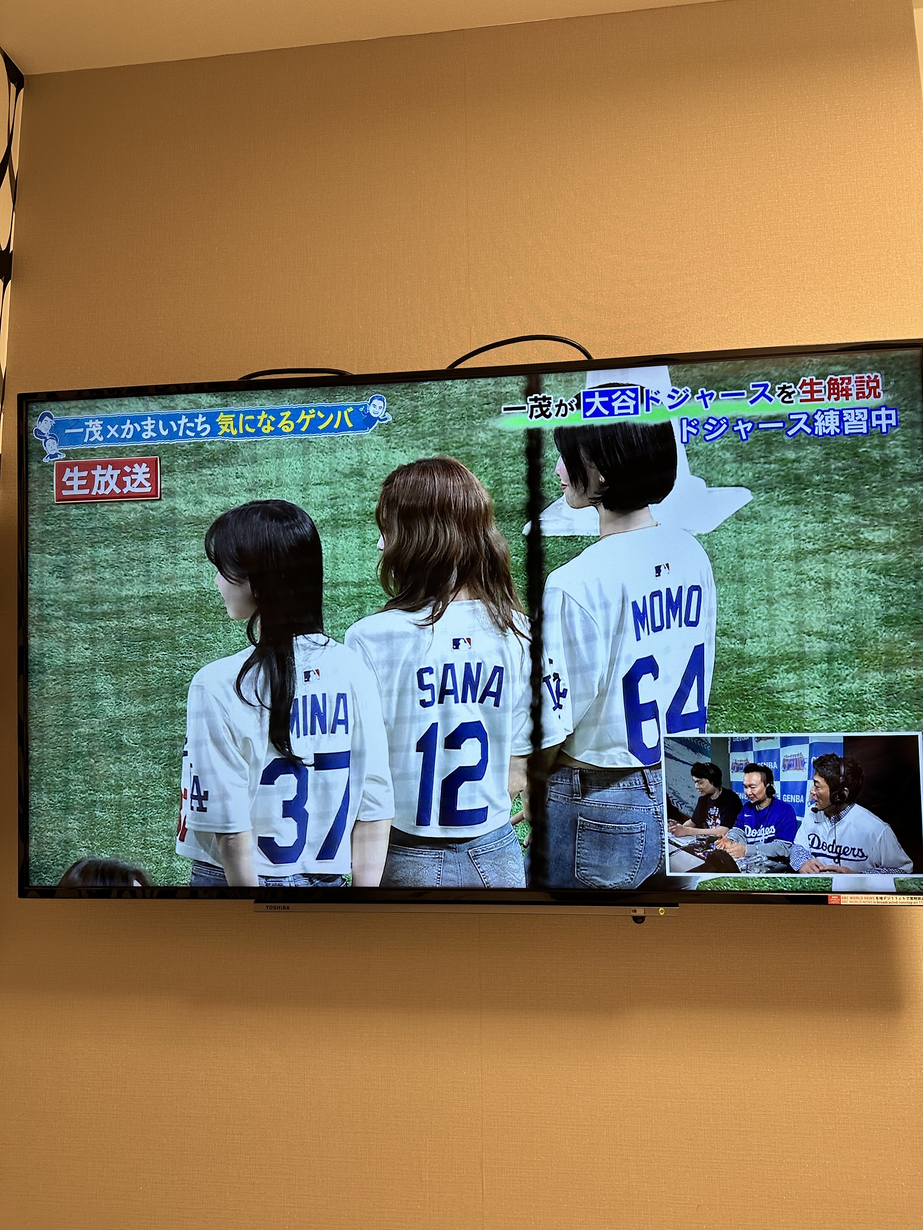 早上打開電視,看到今天開球的來賓,竟然還是Twice的 Mina、Sana、Momo,真的好想去😭