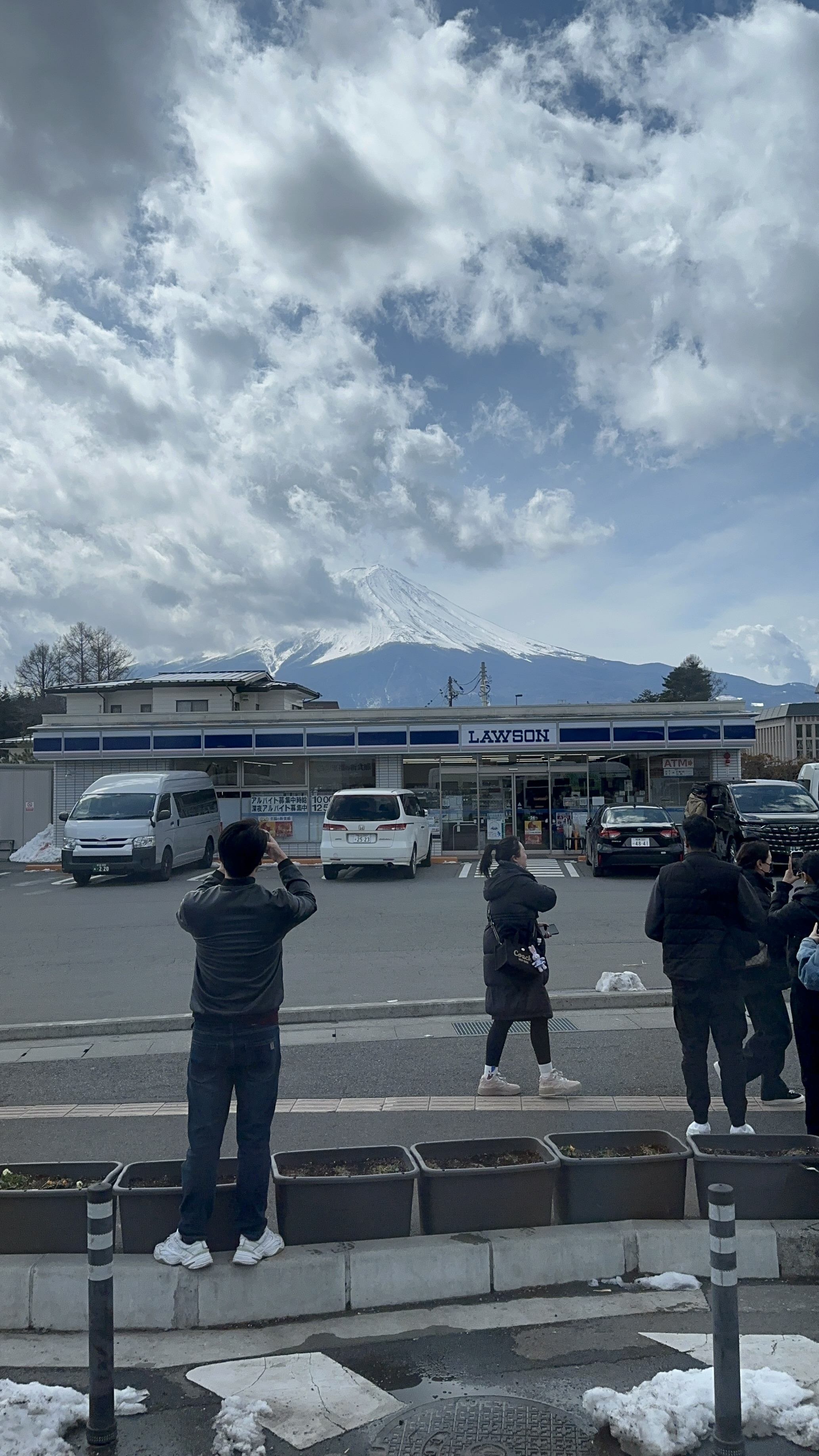 沿路會經有名的拍照景點 Lawson 富士河口湖町役場前店之前報導的黑幕已經拆掉了。