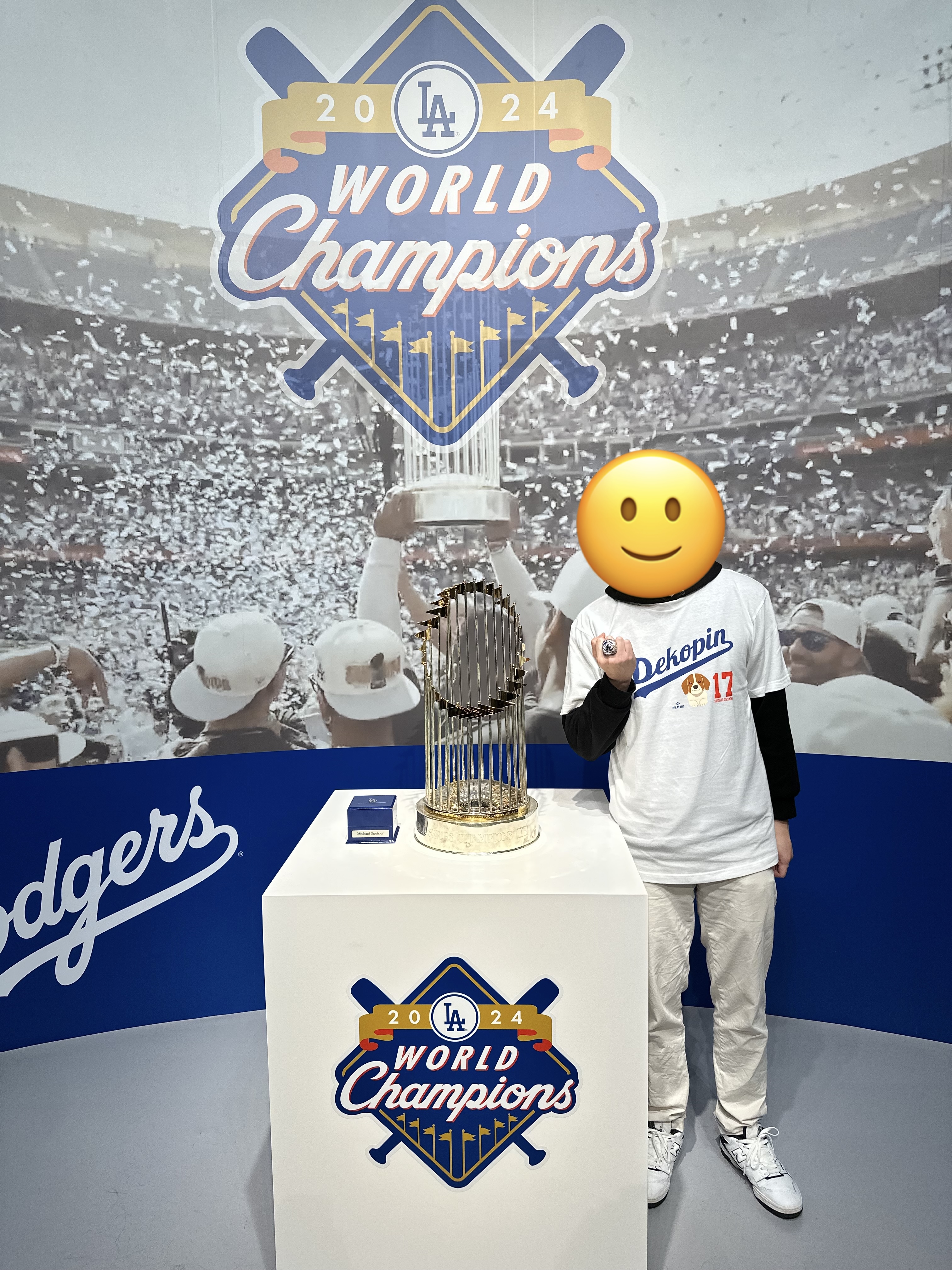 跟冠軍獎盃、戒指的合照。